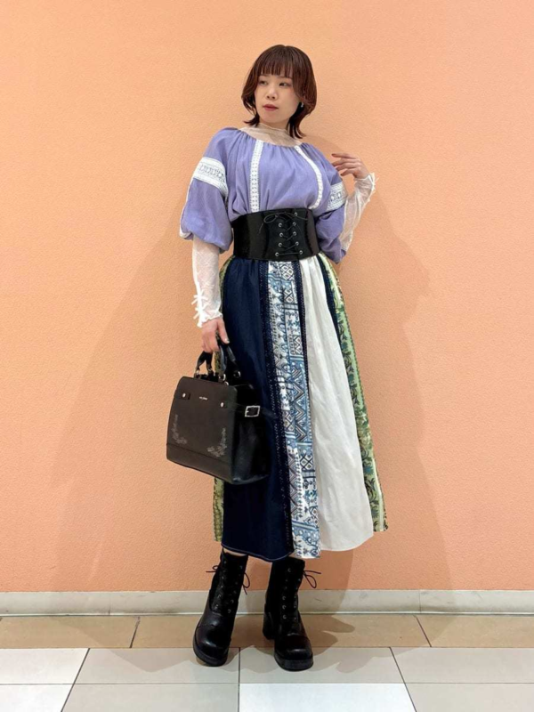 ご購入いただくお客様の年齢層は幅広いですが、特に普段はaxes femmeのお洋服をあまり着ない方や、カジュアルスタイルがお好きな方にも選んでいただくことが多いです◎