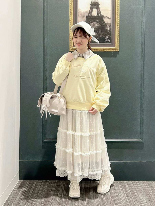 ドットチュールスカートを合わせれば、軽やかでポップな春らしい印象に♡