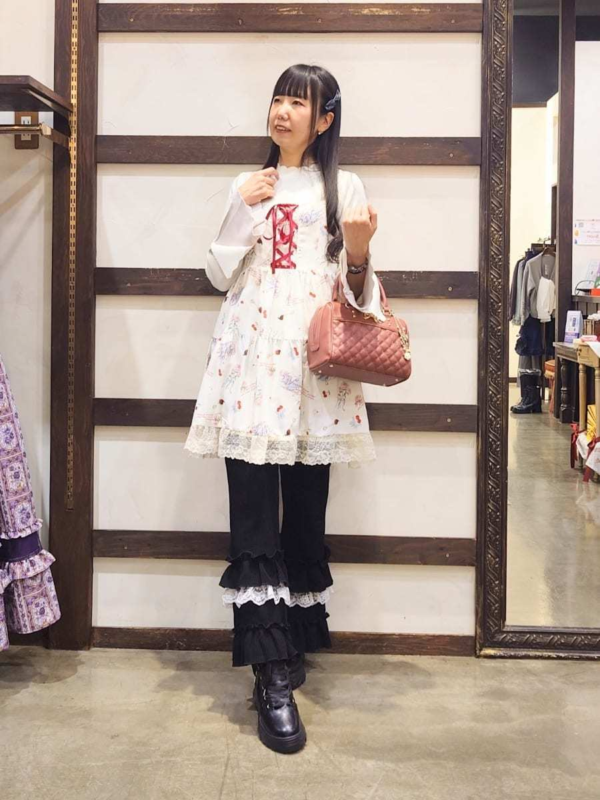 ボトムスにはフリルデザインのパンツを合わせて、甘さと動きやすさを両立!