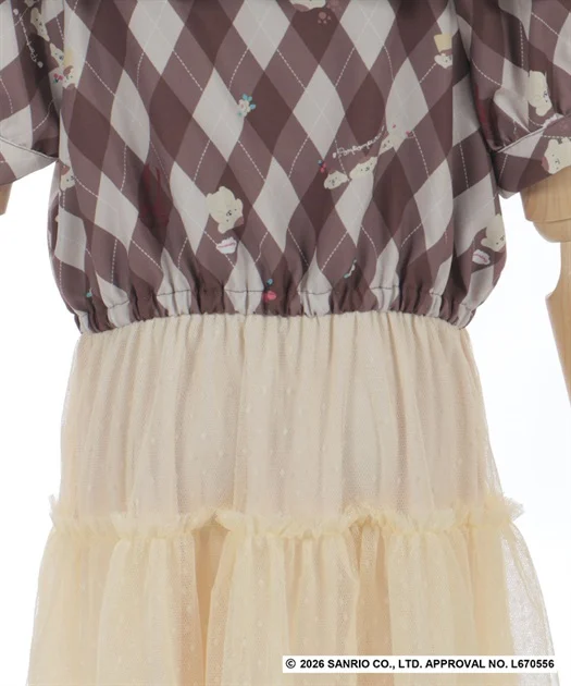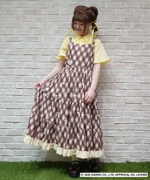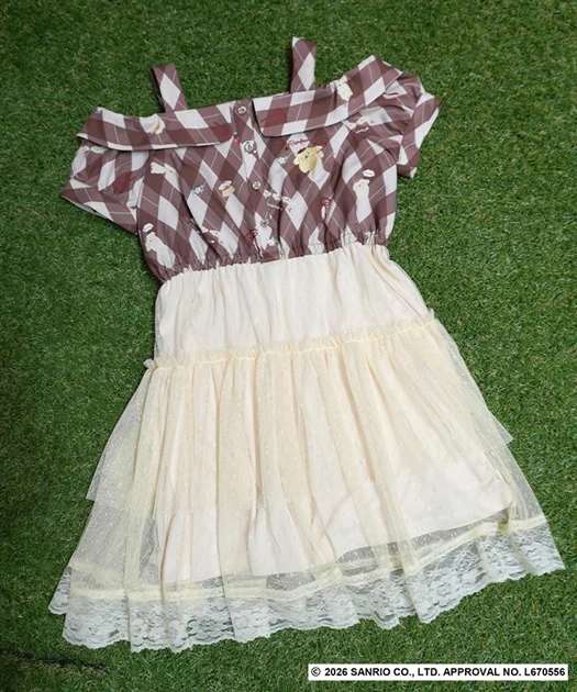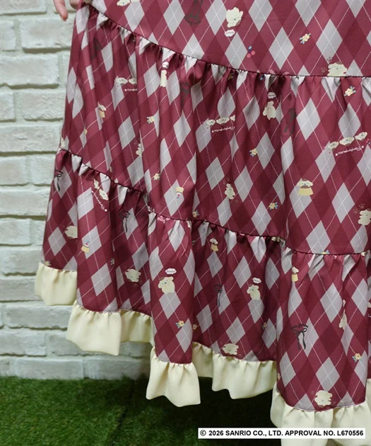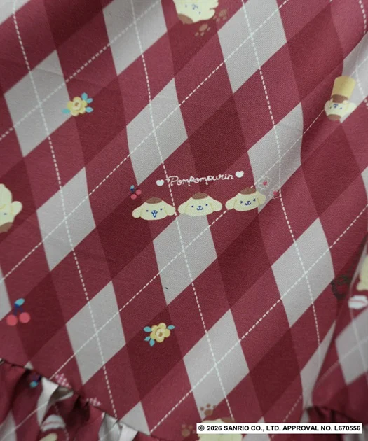 クラシカルなチェック柄の中に、のんびりとした表情のポムポムプリンが散りばめられた主役級のワンピース♡