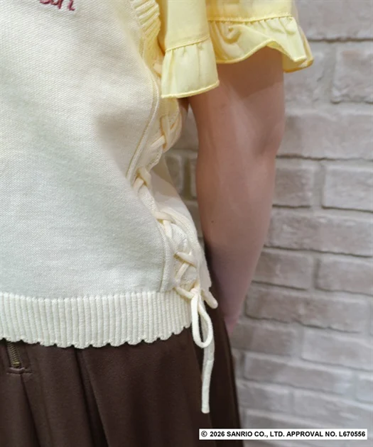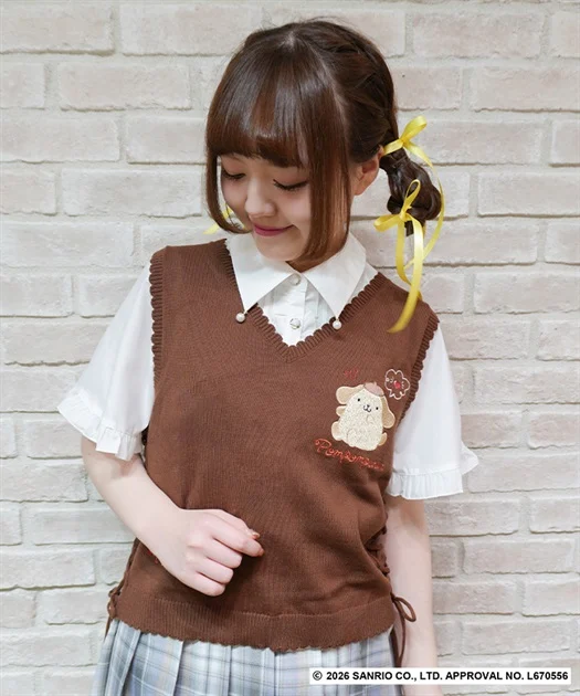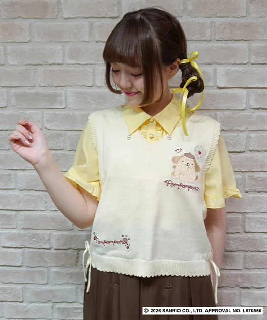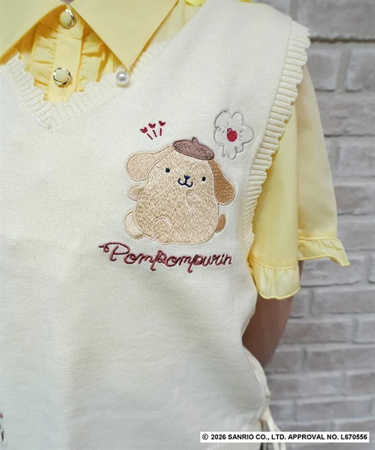 ポムポムプリンの刺繍がインパクト大!なニットベストは、30周年のお祝いにふさわしい贅沢な仕上がり♡