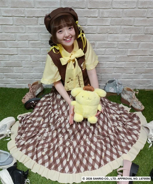 今回のコラボワンピースとお揃いのカラーでまとめて、とびきり甘いレトロなポムポムプリンコーデを完成させてみて♡