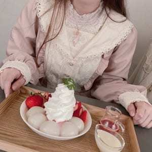 【近場でカフェ&街歩き♪】苺×レースの甘めスタイルを、デニムで大人可愛くブラッシュアップ