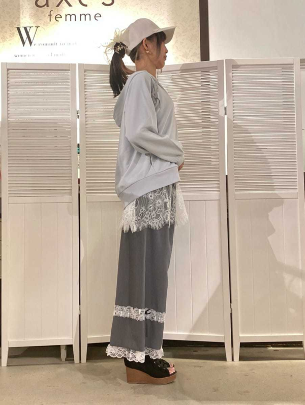 カジュアルなアイテムながら、バックリボンやレース使いなどaxes femmeらしいディテールが詰まっているので、好印象をキープしたまま快適に過ごせます♡