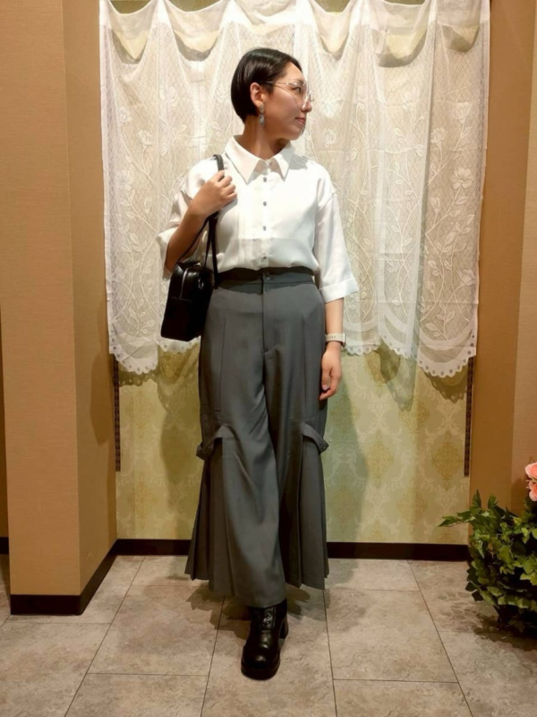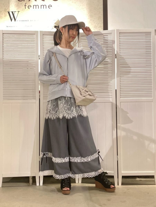 甘さはありつつもパンツ合わせなので、普段カジュアル派の方でも挑戦しやすいスタイリングです!