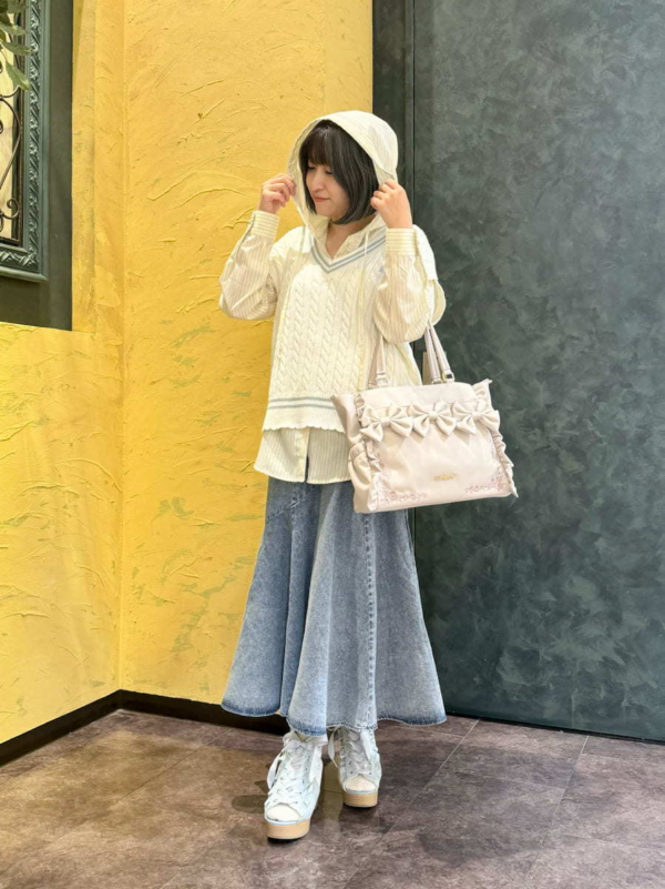 合わせたデニムスカートは、今シーズンのaxes femmeが激推しする最強アイテム!