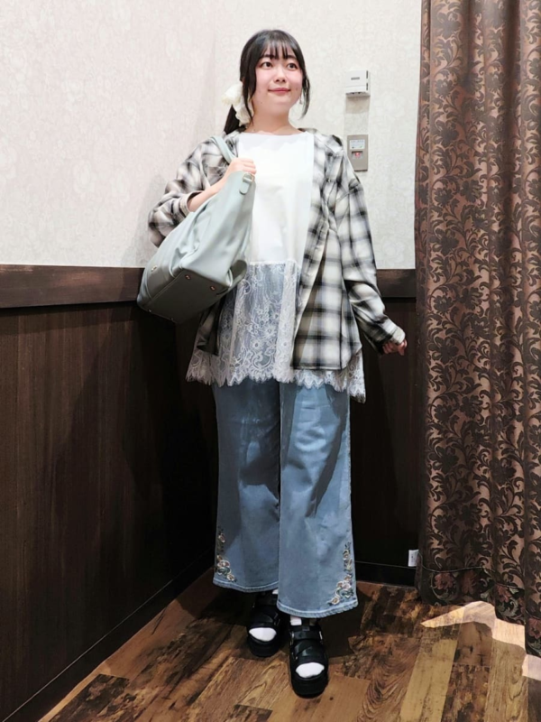 パンツのレースの色とリンクさせることで、コーデ全体の統一感を出しました◎