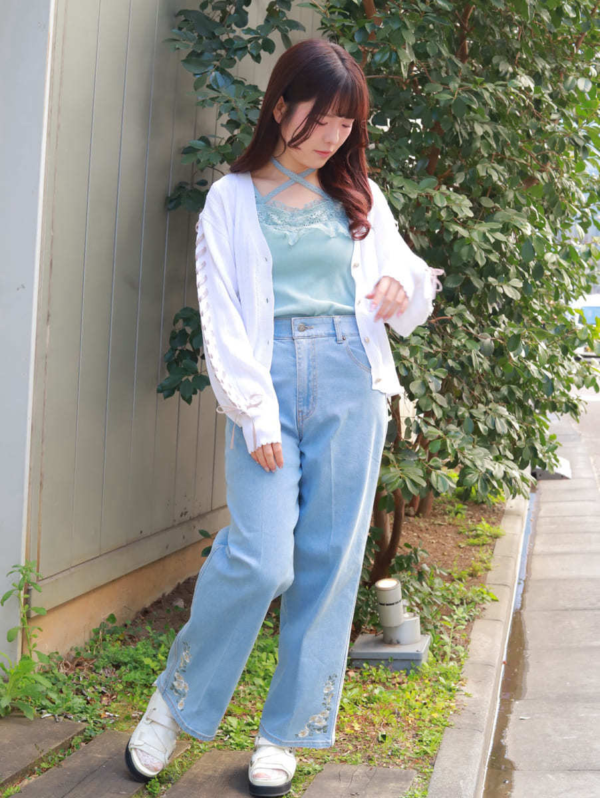 チラ見えしても可愛いデザインなので、カーディガンのボタンを開けてあえてトップス使いするのが今っぽくてオシャレ♪
