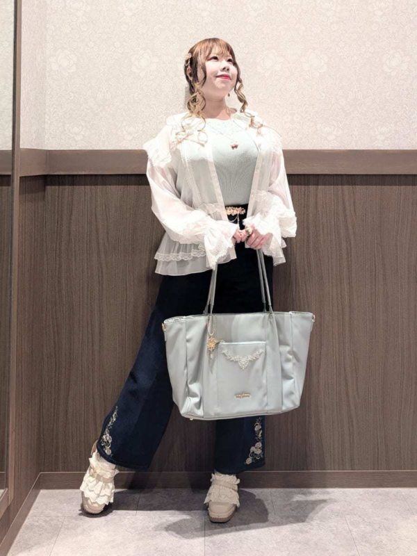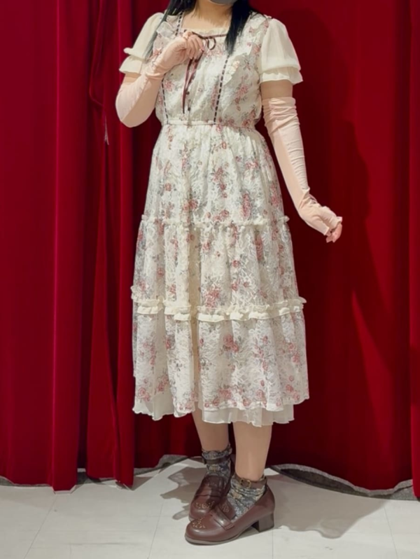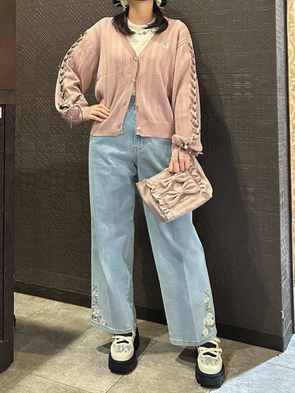 袖のレースアップ×巻きバラ、さらに胸元のスイートピー刺繍がaxes femmeらしいときめきをプラスしてくれます♡