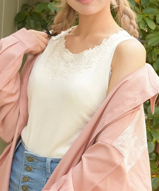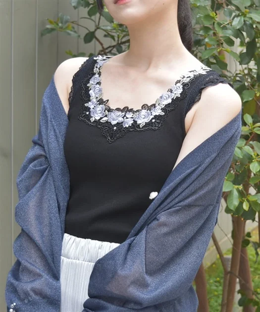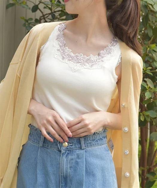 1枚でコーデが決まる優秀さ♡「カップ付ローズレースタンク」