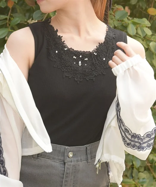 360度どこから見てもお洒落♡「吸水速乾モチーフレースタンク」