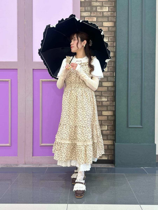 華やかなフリル使いとゴールドのハンドルが目を惹く、とびきりレトロで可愛い晴雨兼用傘♡