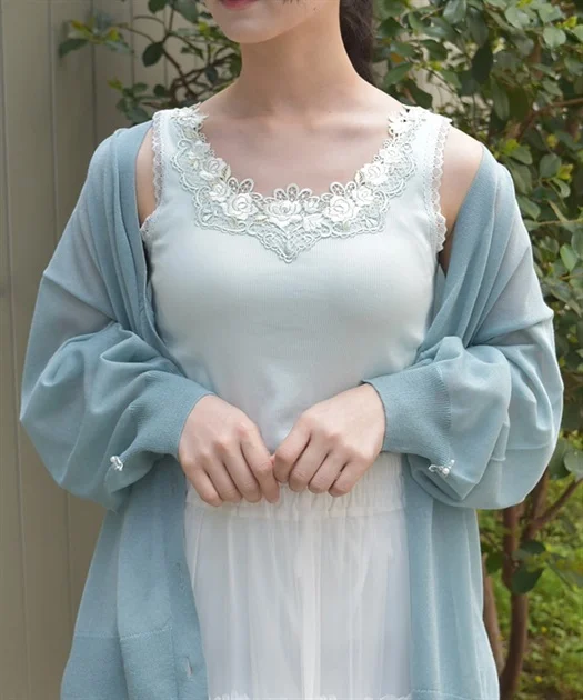 透け素材のインナーとしてはもちろん、裾のレースを活かして1枚で着こなしてもサマになる、この夏ヘビロテ確定の優秀アイテム!