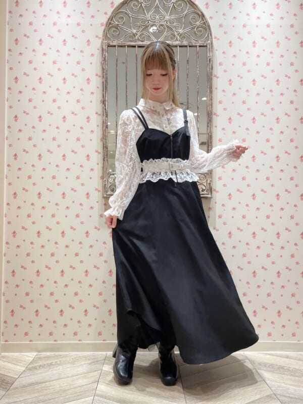 黒のベルトで締めれば、雰囲気の邪魔をせずにコーデのバランスを整えてくれます♪
