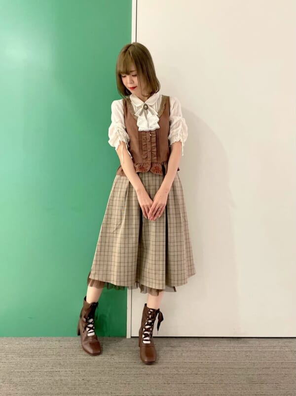 レトロガーリーな雰囲気がかわいいアイテムで、フリル付きブラウスと合わせるのがおすすめ♩