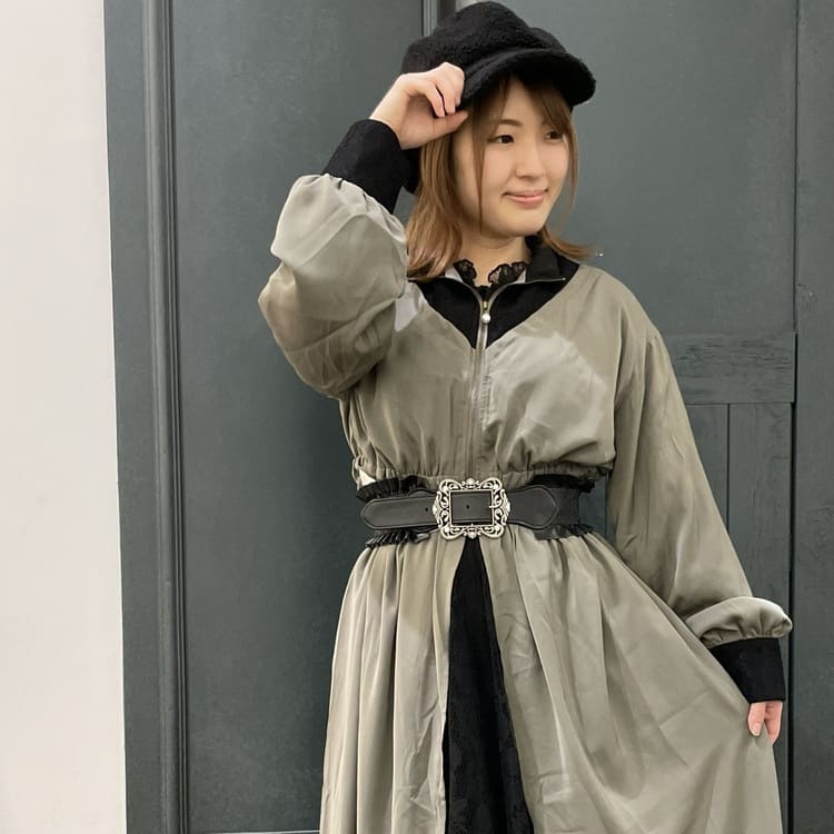 スカートのベルトは額縁デザインで、アンティークな印象に。